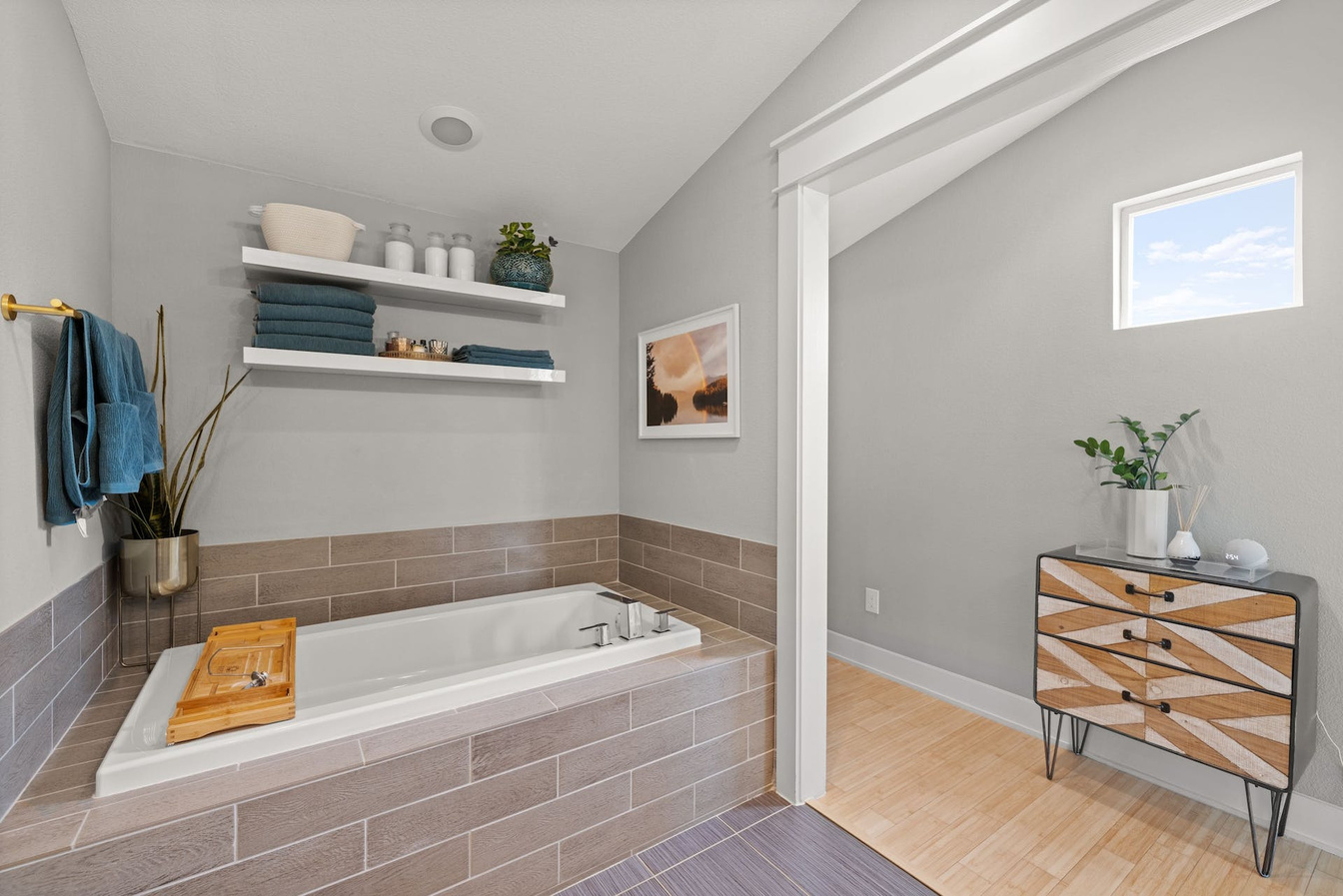 All bedrooms are oversized and have full sized closets and Elfa shelves for extra storage. The matster bedroom is easily the crown jewel of this home as it encompasses the entire second floor. A lovely soaking tub, full shower and double vanity have been updated with modern fixtures and appointments. And, a phenomenal his/hers closet has been fully renovated with Elfa storage throughout.