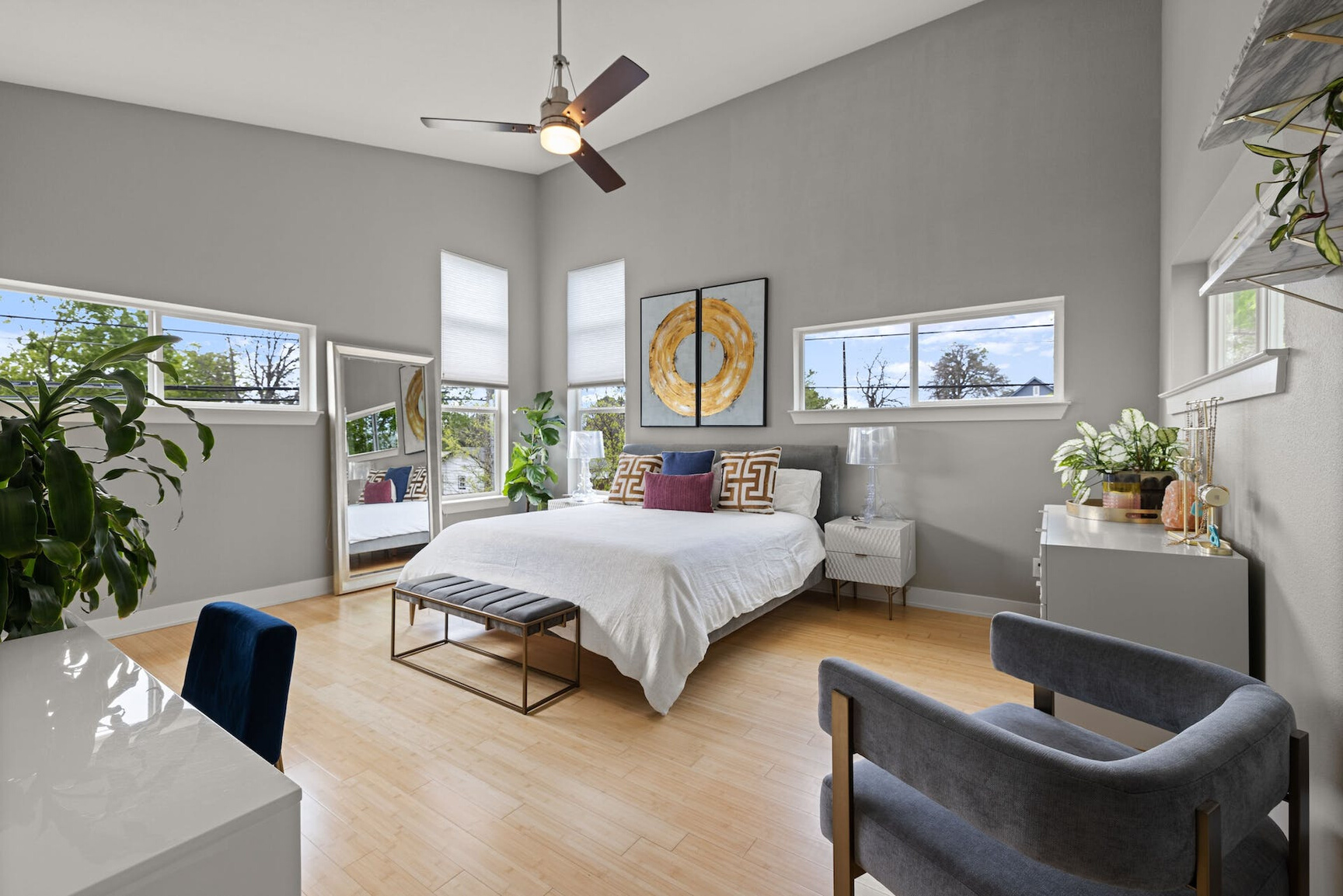 First floor bedrooms are perfect as guest rooms or a WFH office.